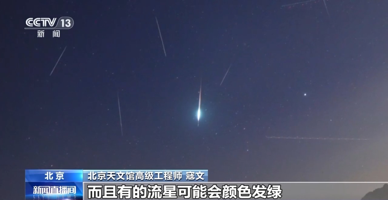北京天文馆高级工程师 寇文:双子座流星雨,能保持流量比较大的时间比较长,所以这个流星雨应该是最不会叫人失望的。