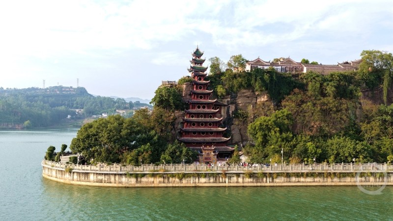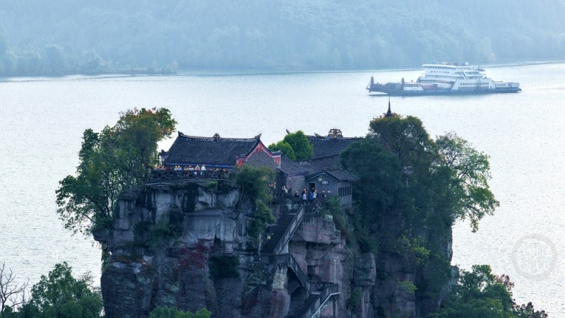 石宝寨四面环水,宛如江上“小蓬莱”。