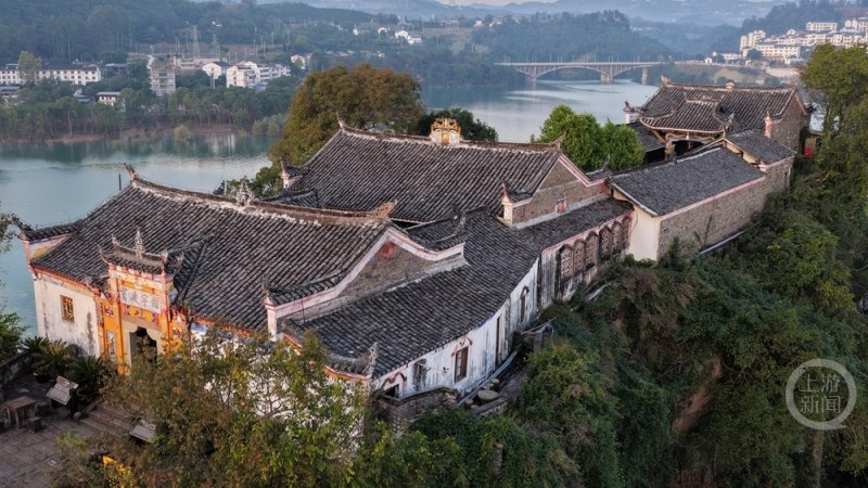 石宝寨寨顶的古建筑群。