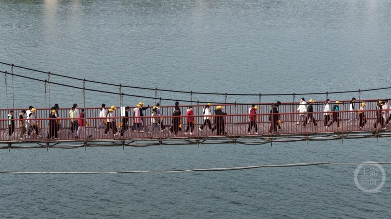 游客通过石宝寨悬索桥。