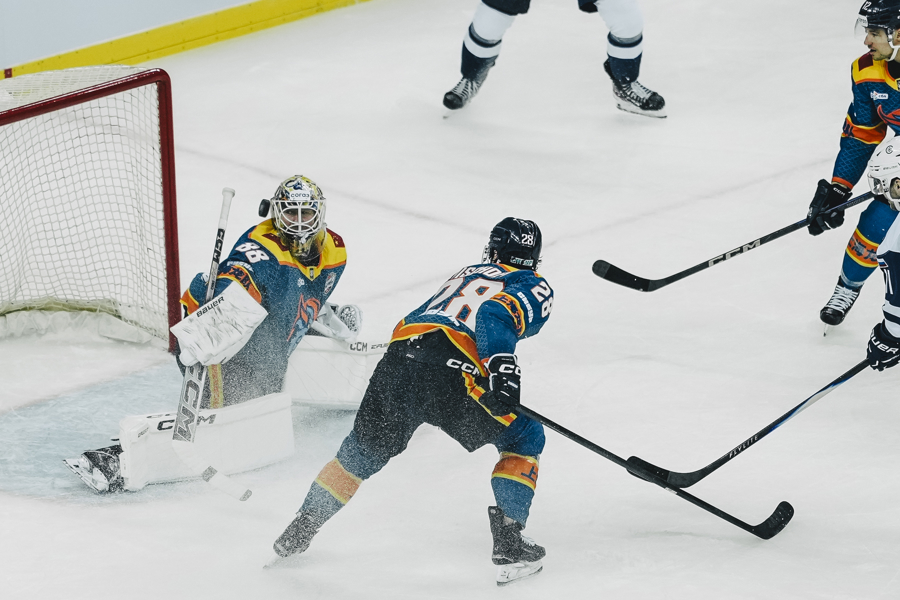 尽管球队队长、2022年北京冬奥会中国冰球队明星球员福将因伤缺席,但上海龙队在家乡父老面前打出了顽强斗志。比赛进行到45分钟时,福将的弟弟福帅抢点破门,将比分扳平。这一进球创造了历史——从“中国冰球队冬奥首球”到“上海龙队KHL联赛首球”,再到“上海龙队在上海主场首球”,福帅完成了三重历史的书写。